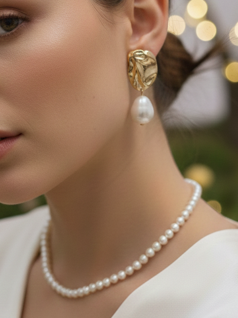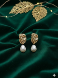 These elegant earrings feature a contemporary gold-tone abstract stud paired with a smooth pearl-drop charm, creating a perfect fusion of modern style and timeless grace. Lightweight and comfortable, they add a refined touch to both everyday and festive looks. A versatile accessory designed to elevate your outfit with effortless sophistication.