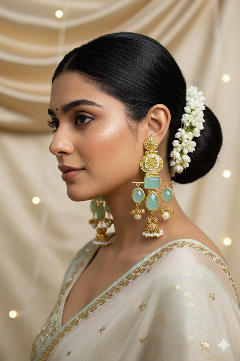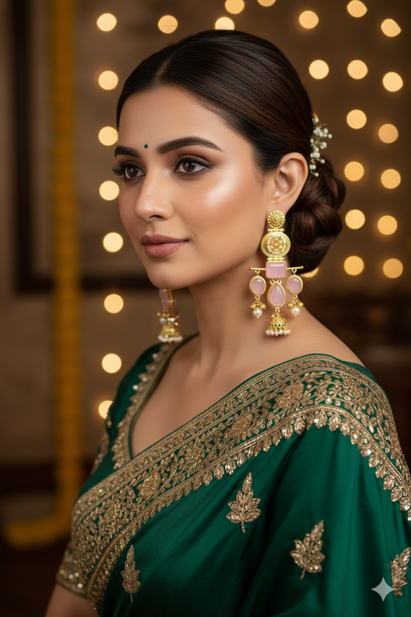 Pair these earrings with a pastel saree or a deep emerald lehenga to create a regal, head-turning look.