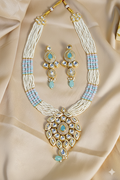 Noor Rani necklace set from house of Mrigaya by Nandini for Traditional and Festive Indian Look | for Gifting | Premium & Luxury Jewelry__Sky-blue