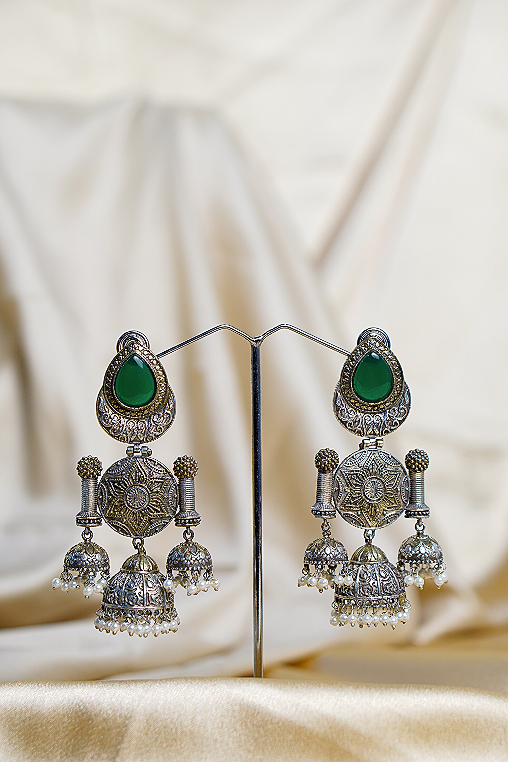 Ratnashree-Light Weight Heavy-Look JhumkaCollection | Premium range from House of Mrigaya by Nandini | for Festive Occasions & Traditional Look -Green