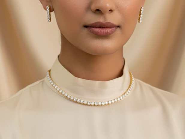 Material & Care Instructions: This metallic Kundan necklace set paired with artificial pearls and stone earrings are ideal and durable for your traditional look. Avoid washing it with soap and shampoo. Avoid using perfumes of all type on product for long & durable life.